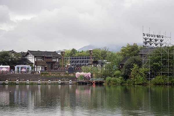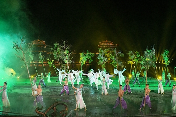 吃過晚飯,小鎮(zhèn)里的“居民”信步來到太極廣場,山水大秀《逍遙游》將會在此演出,180°的臨水舞臺和水上延展舞臺,全方位近距離為我們展現(xiàn)。