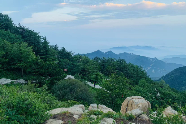 將近傍晚時分,天色似被一只無形的大手,緩緩地揉進了灰暗的色調(diào)。山間的風(fēng),也裹挾著絲絲涼意,穿梭于林葉之間,我們一行人,于這漸暗的天色中艱難匯合。每個人的臉上都帶著攀登后的疲憊,卻又難掩眼中那股興奮與期待交織的光芒。稍作整頓,便又毅然決然地繼續(xù)朝著那高聳入云的玉皇頂上行。